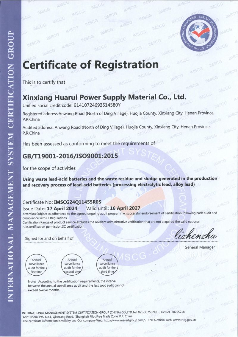 新鄉(xiāng)市華瑞電源材料有限公司位于河南省新鄉(xiāng)市獲嘉縣,是2009年8月注冊(cè)成立的一家從事廢舊鉛酸蓄電池回收處置利用的企業(yè),公司依靠自身研發(fā)能力和完善、規(guī)范的創(chuàng)新管理制度,一直走在再生鉛行業(yè)的技術(shù)前沿。