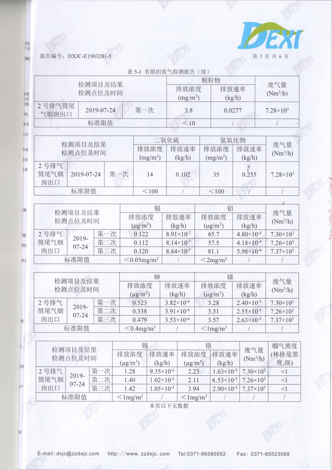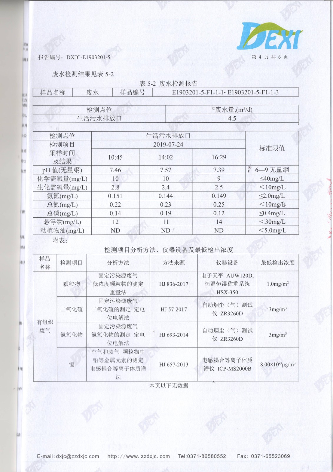 2019年7月廢氣廢水檢測